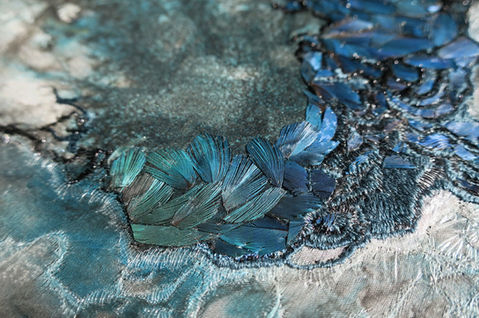 Brandibas re-invents needlepoint embroidery as an expressive and poetic medium, developing a range of delicate techniques: from her painterly use of dying fabrics, through to the creative fine needlework of the embroidery itself.