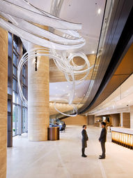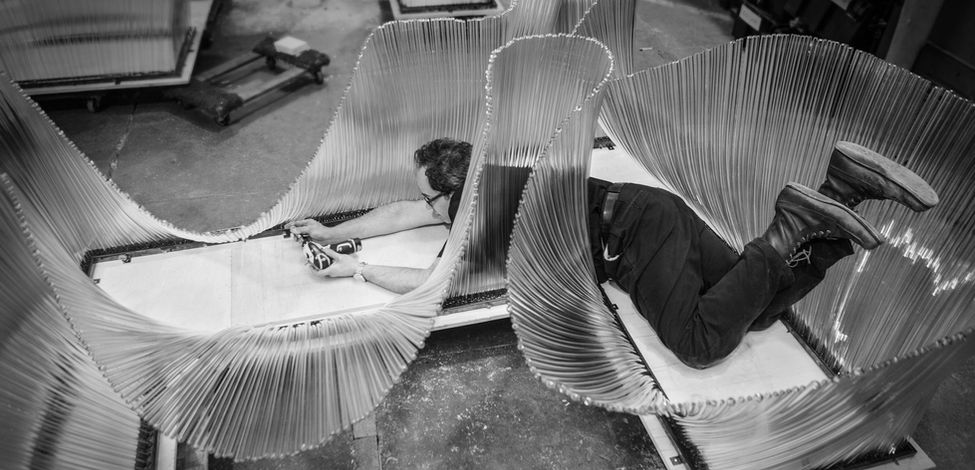 Each piece is designed with its architectural setting in mind, using light as a crucial element. Weinstein’s sculptures appear to defy gravity, creating fluid forms that reveal the unseen natural forces that animate both the space and the artwork.