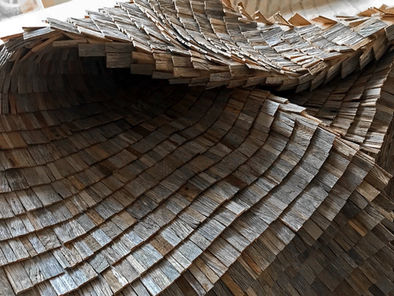 The origin of the timber is central to his process, whether working with the pure-white timbers of a holly tree or the semi-petrified timbers of a 5000-year-old bog oak. Led by the timber itself, he works instinctively as he assembles his material into delicate patch-worked landscapes of texture, colour and pattern.