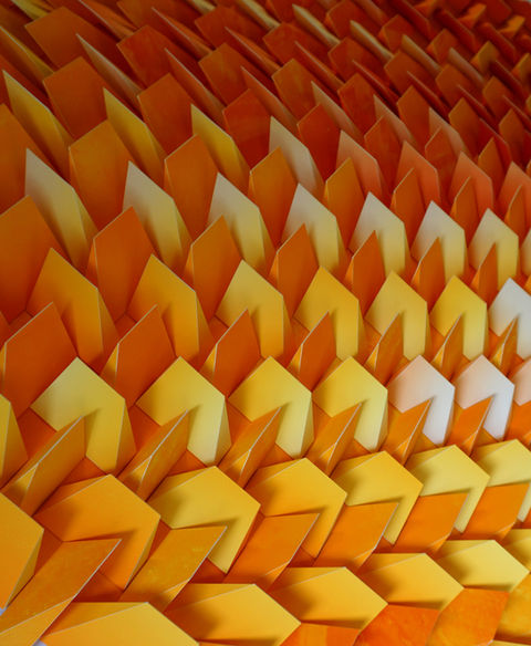 Whilst the work of Shlian has an apparent mathematical and meticulously organised nature, surprisingly the artist often works in a more intuitive approach. Starting with the inception of an idea, the artist lets his chosen material of paper pave the way, as he folds and evolves the artwork.
